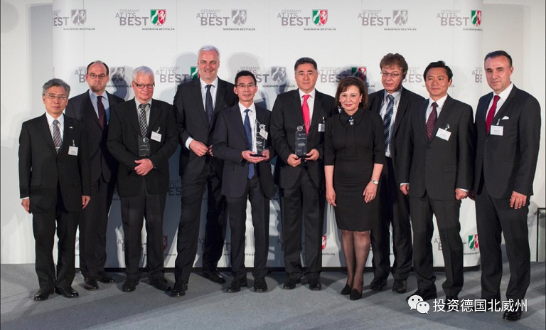 NRW.INVEST Award 北威州最佳投资奖 国内外投资者不仅能带动北威州的经济,为当地创造新的工作岗位,而且能够增强当地的创新能力并给本地带来新产品、配套服务和技术工艺。为表彰投资者为北威州的竞争力作出的重要贡献,北威州投资促进署每年向从州内遴选出来的模范海外投资商授予“北威州最佳投资奖”,该奖项同时也是对所有选择到北威州落户的投资商的褒奖与肯定。 历届获奖投资者代表